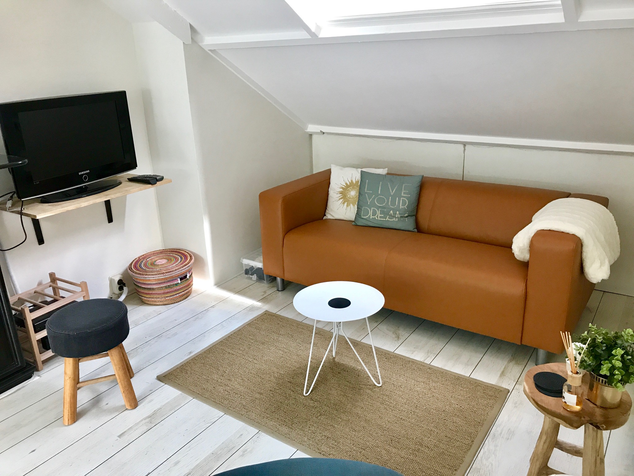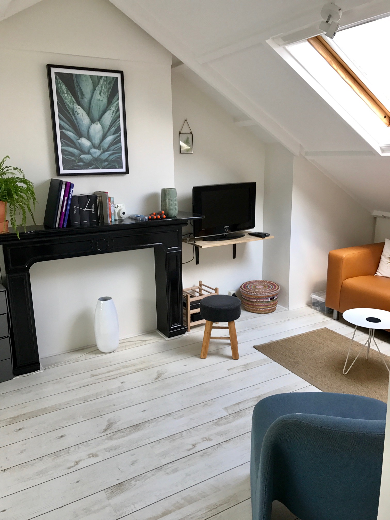 de schouw geeft een gezellige sfeer aan het appartement. Badkamer